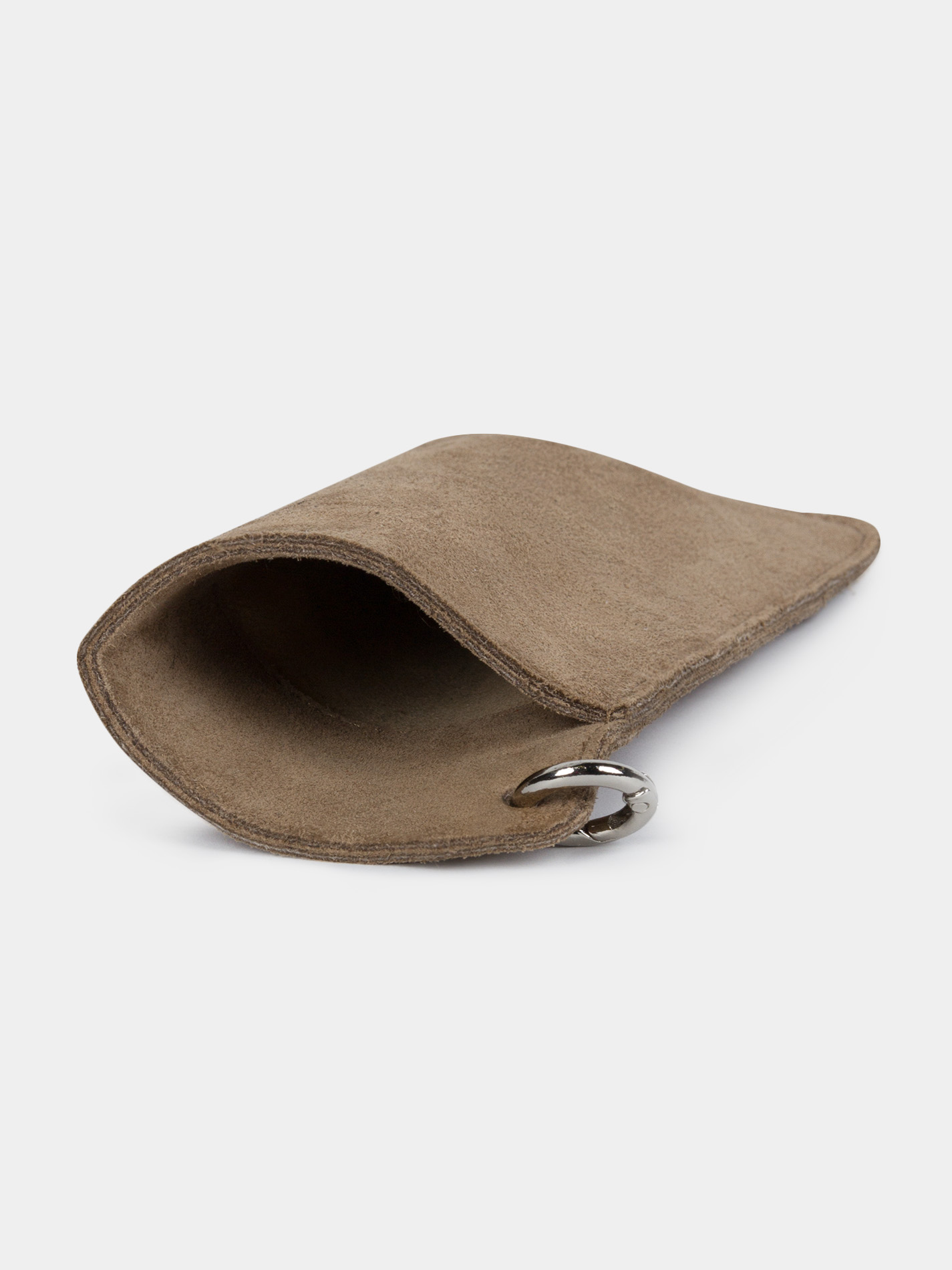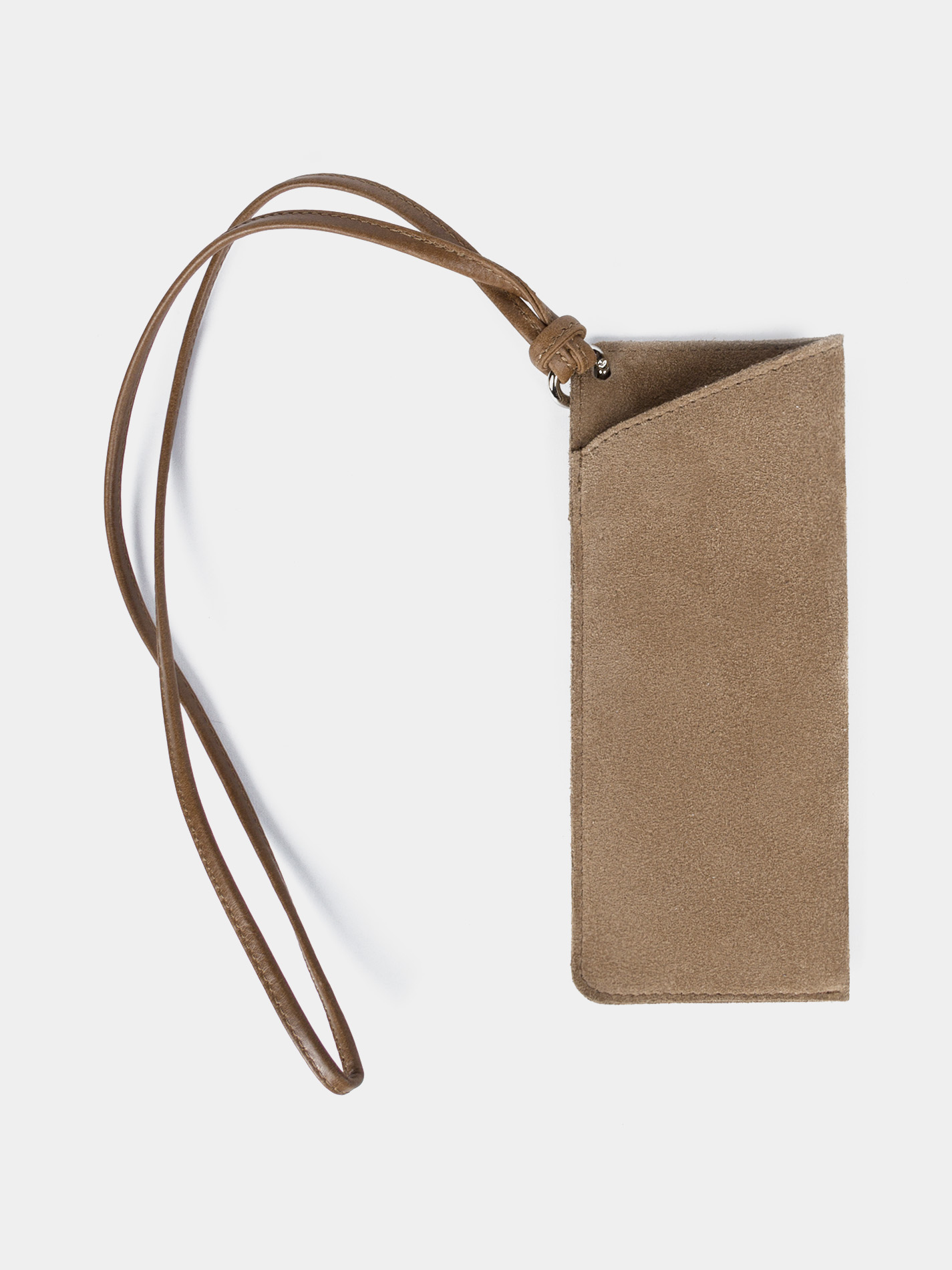 Цвета:Очечник бренда SAAJ из натуральной замши цвета тауп с металлическим кольцом на шнурке. Длина шнурка 40 см. На задней стенке изделия предусмотрен карман для карты. Внутри — текстильная подкладка бежевого цвета. Изделие упаковано в тканевый мешок.