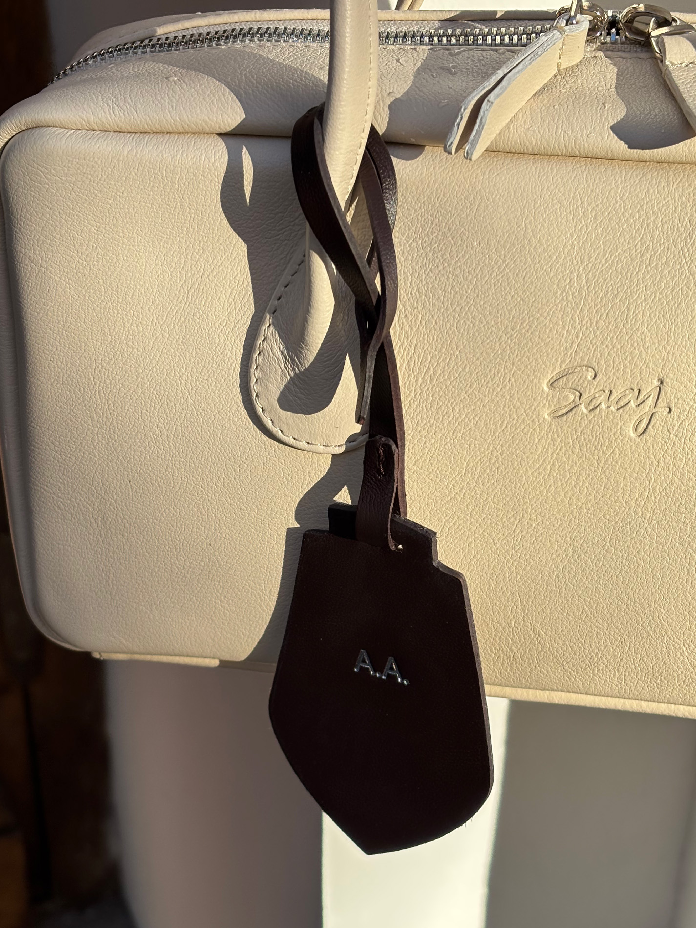 Тег из зернистой натуральной кожи шоколадного цвета в комбинации с мехом — это аксессуар, который сделает вашу сумку уникальной. Тег можно прикрепить к ручке сумки, а также нанести на него персонализацию (например, имя или инициалы).