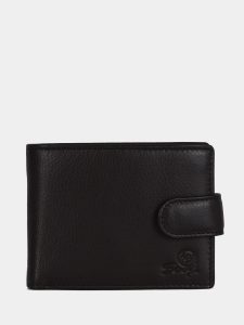 Кошелек торговой марки SAAJ из натуральной кожи. Портмоне с клапаном на кнопке. Внутри два отдела для купюр, один карман для монет с клапаном на кнопке, три отдела для банковских карт, два потайных кармана. Изделие упаковано в фирменную подарочную картонную коробку с логотипом фирмы.
