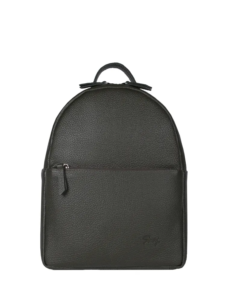 Городской рюкзак торговой марки SAAJ из натуральной кожи оливкового цвета. Рюкзак закрывается на молнию. На передней стенке карман на молнии. В рюкзаке одно отделение, где можно поместить планшет 9.7" и формат А5. Внутри карман на молнии для документов, открытый карман для мелочи. Максимальный вес содержимого рассчитан до 3,5 кг. Плечевые регулируемые ремни рюкзака усилены. Максимальная длина плечевых ремней 85 см, минимальная длина 66 см. Изделие упаковано в тканевый мешок.