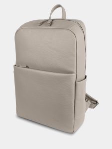 Городской рюкзак торговой марки SAAJ из натуральной кожи молочного цвета имеет 2 отделения. Внутри основного отделения открытый карман для документов формата А4, карман на молнии и открытое отделение для ноутбука 17 дюймов. На передней и задней стенках расположены карманы на молнии. По бокам рюкзака открытые карманы. Максимальная длина плечевых ремней 83 см, минимальная 70 см. Изделие упаковано в тканевый мешок.