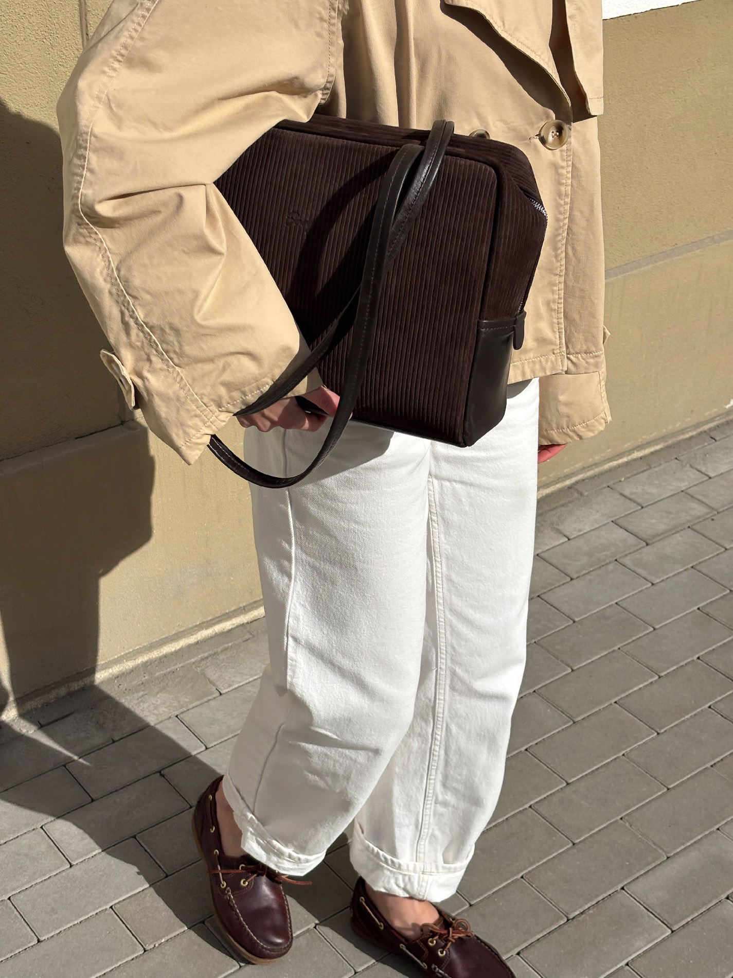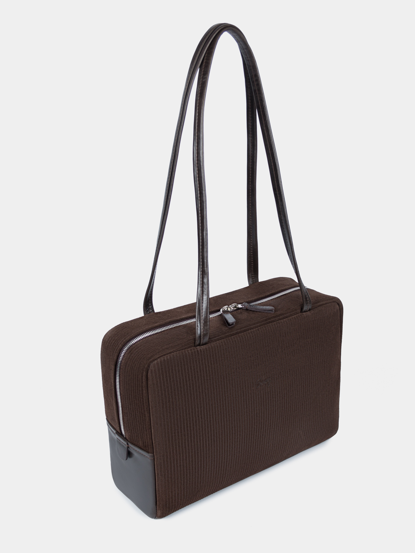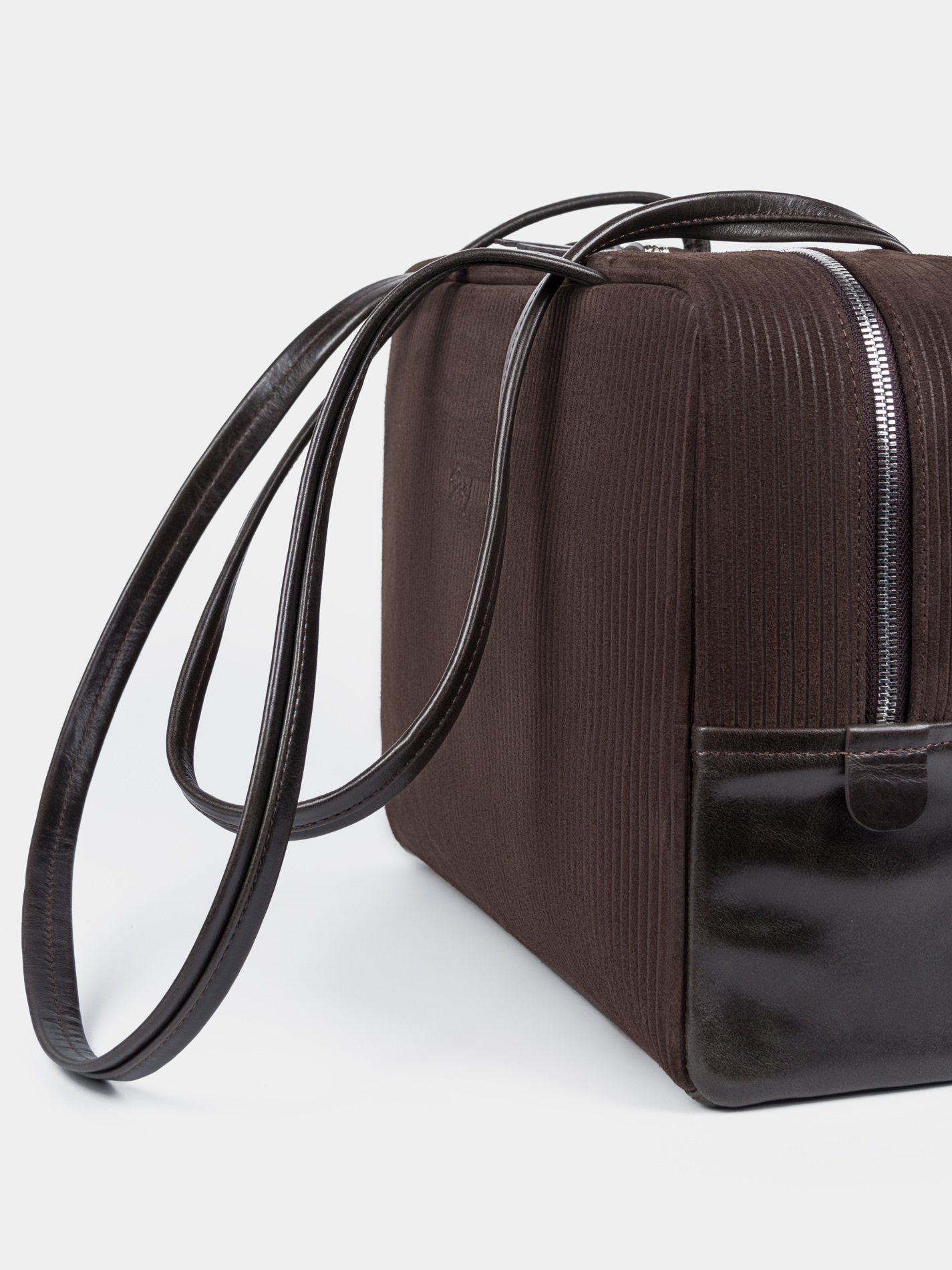Цвета:Сумка Айтишница 14 из высококачественной натуральной замши (вельвет) коричневого цвета (полосы вертикальные) в комбинации с натуральной кожей коричневого цвета. Сумка закрывается на металлическую молнию. В сумке карман на молнии для ценных вещей, а также откидной карман на липучках для ноутбука 14 дюймов и формата А4. Откидной карман (длина — 32 см, высота — 23 см, глубина — 2,5 см) оберегает ноутбук от ударов и царапин от молнии. У сумки предусмотрены длинные функциональные ручки (37 см) для носки в руках и на плече. Интересный стильный вариант на каждый день. Рекомендованная нагрузка до 3,5 кг. Изделие упаковано в текстильный мешок.
