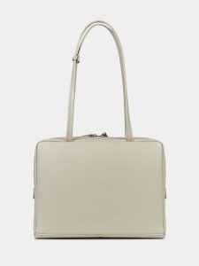 Сумка Айтишница 15 из высококачественной натуральной кожи молочного цвета с металлической молнией. В сумке два кармана, один из которых на молнии, а также откидной карман на липучках для ноутбука 15 дюймов и формата А4. Откидной карман (длина — 35 см, высота — 25 см, глубина — 2,5 см) оберегает ноутбук от ударов и царапин от молнии. У сумки предусмотрены длинные функциональные ручки (37 см) для носки в руках и на плече, а также съемная перемычка для ручек. Интересный стильный вариант на каждый день. Рекомендованная нагрузка до 3,5 кг. Изделие упаковано в текстильный мешок.