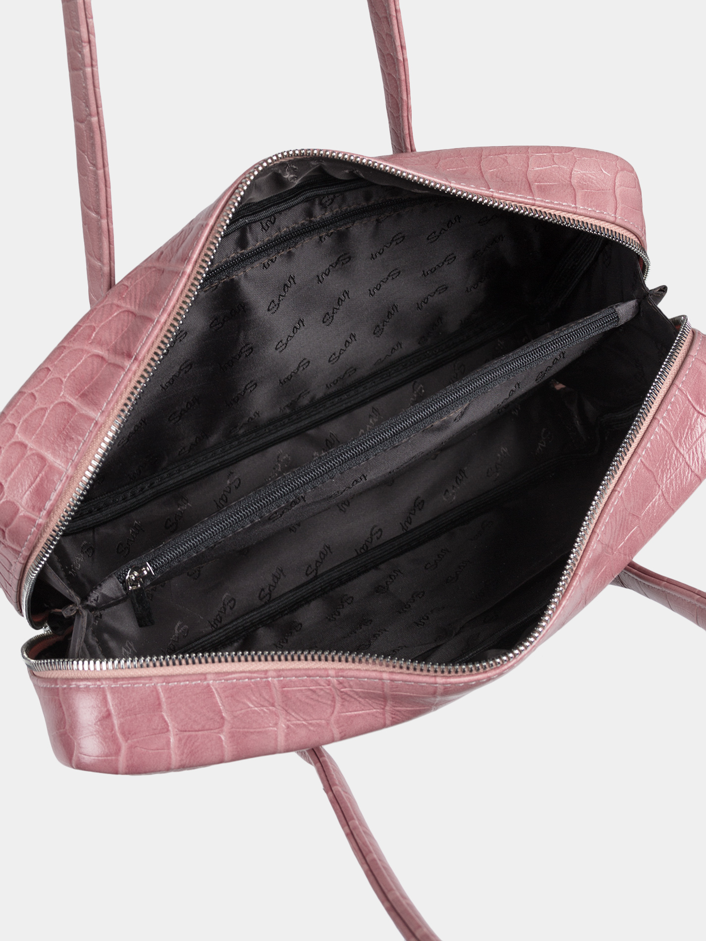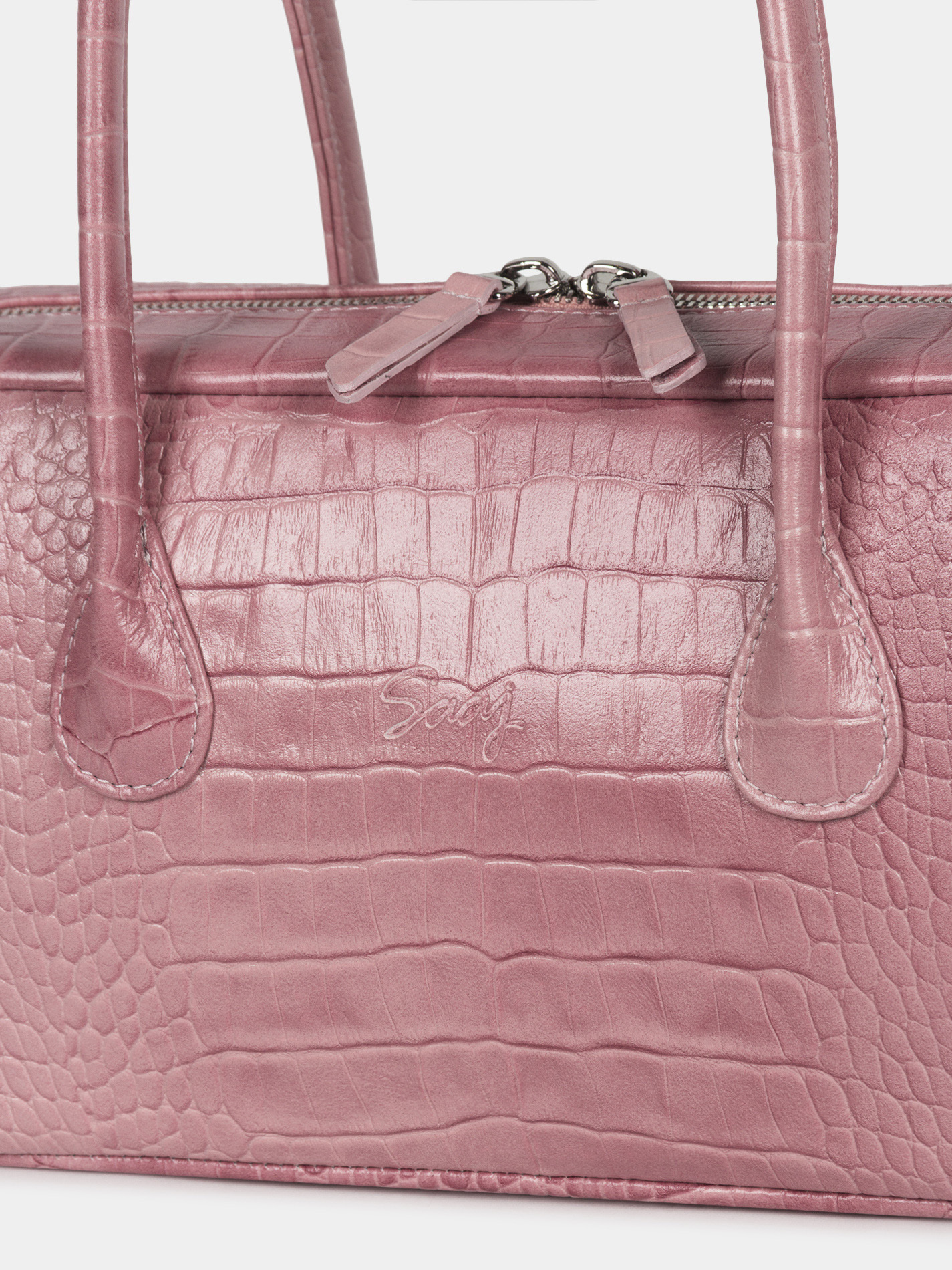 Цвета:Сумка-багет бренда SAAJ из высококачественной натуральной кожи с тиснением под крокодила розового цвета. У сумки одно отделение. Внутри карман-перегородка на молнии, 2 открытых кармана для мелочи, 1 карман на молнии. Высота ручек 18 см. Изделие упаковано текстильный мешок