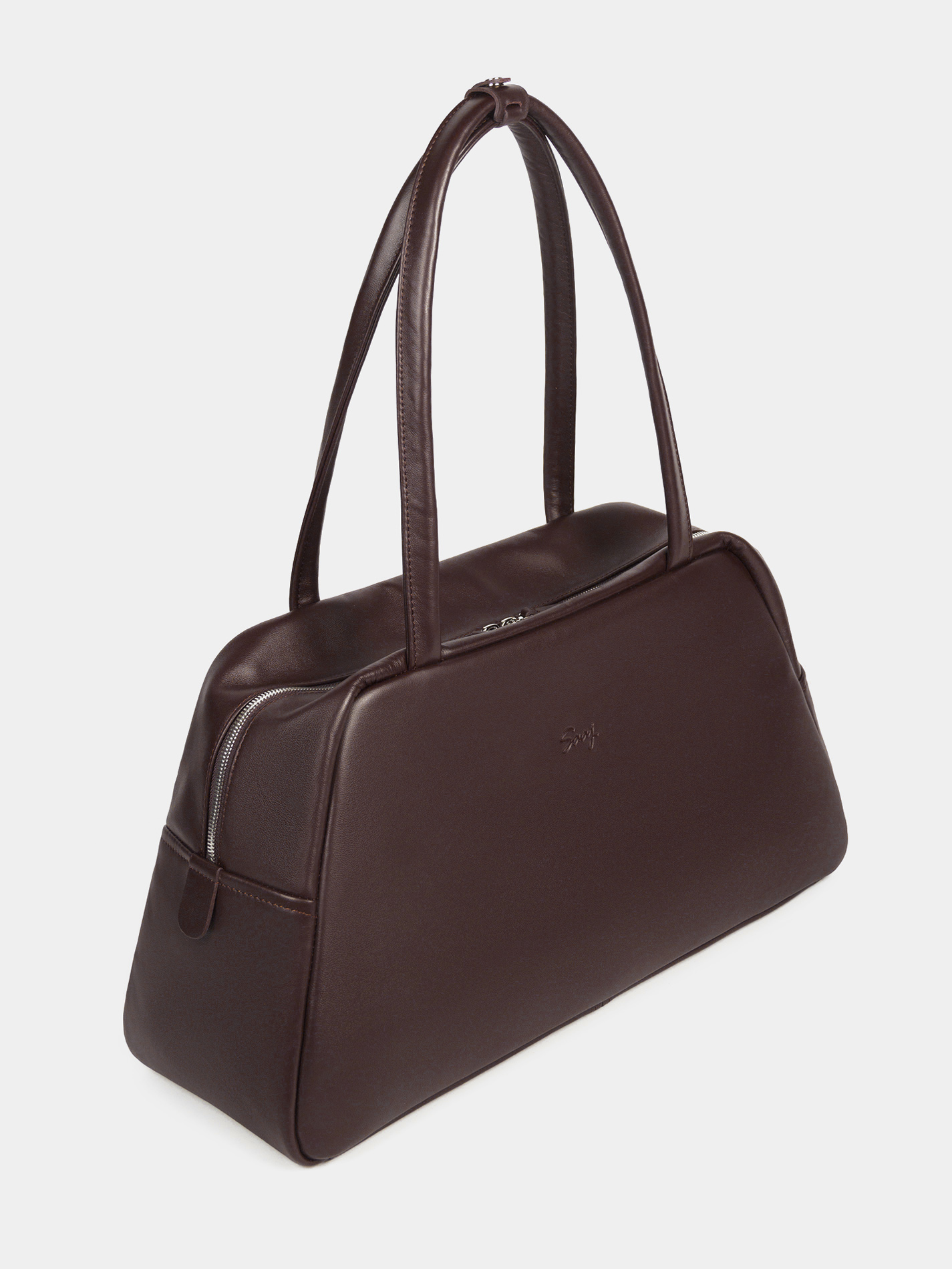 Сумка Balance из высококачественной натуральной кожи темно-коричневого цвета трапециевидной формы. В сумке: два открытых кармана, один карман на молнии для ценных вещей, два боковых кармана на резинке, а также откидной карман на липучках для ноутбука 14 дюймов и формата А4. Откидной карман (длина — 31 см, высота — 22 см, глубина — 2,5 см) оберегает ноутбук от ударов и царапин от молнии. Удобные кожаные ручки (высота 28 см) с перемычкой обеспечивают комфорт при повcедневном использовании. Рекомендованная нагрузка до 3,5 кг. Изделие упаковано в текстильный мешок.