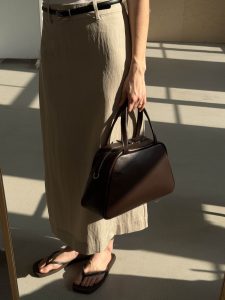Сумка Balance mini из зернистой высококачественной натуральной кожи оливкового цвета трапециевидной формы. Закрывается на металлическую молнию. В сумке: одно большое отделение на молнии, два боковых кармана на резинке, открытый карман для телефона и карман на молнии для карт и личных вещей. Удобные кожаные ручки (высота 16 см) обеспечивают комфорт при повcедневном использовании. Рекомендованная нагрузка до 3,5 кг. Плечевой регулируемый ремень на карабинах усилен. Максимальная длина плечевого ремня 130 см, минимальная длина 110 см. Изделие упаковано в текстильный мешок.