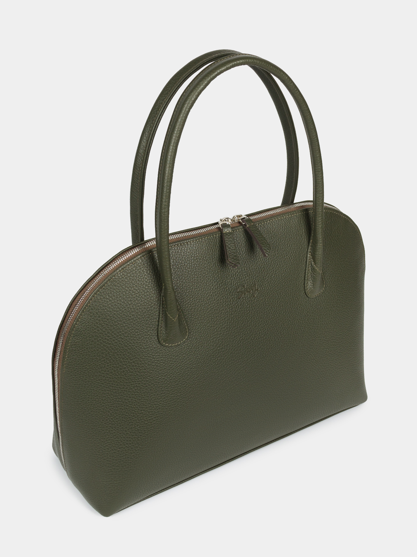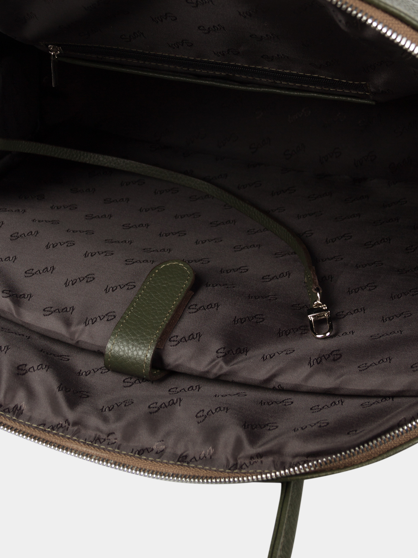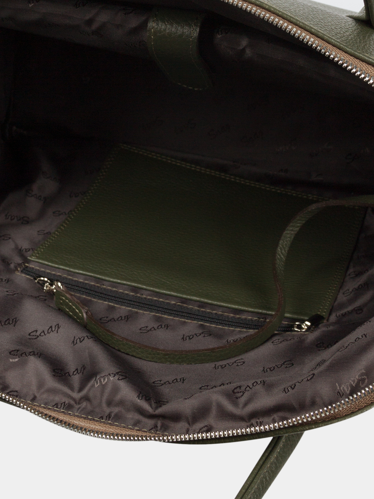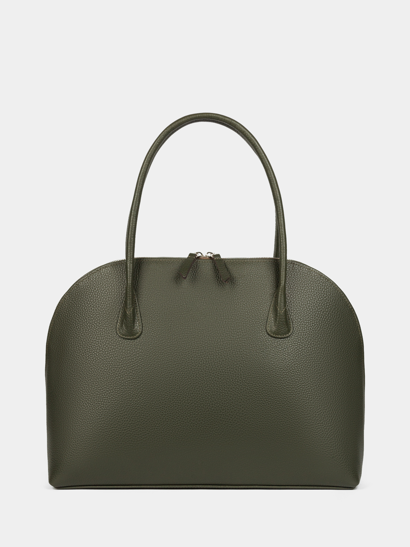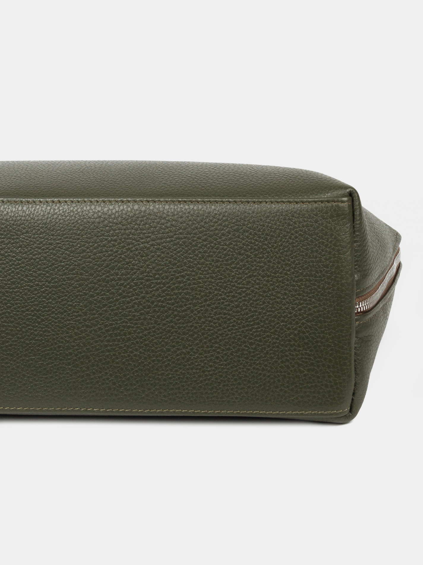 Сумка из натуральной кожи оливкового цвета для ноутбука 14 дюймов. Вместительное внутреннее отделение включает: карман для ноутбука 14 дюймов, карман на молнии для ценных вещей, открытый карман. Удобные кожаные ручки (высота 15 см) обеспечивают комфорт при повcедневном использовании. Рекомендованная нагрузка до 3,5 кг. Изделие упаковано в текстильный мешок.