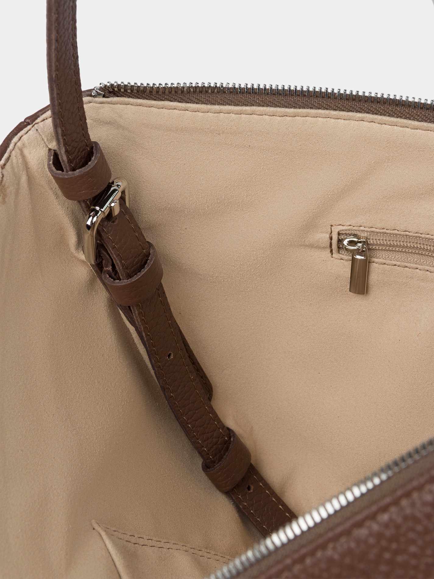 Сумка-хобо из высококачественной натуральной кожи цвета виски с регулируемой ручкой. Внутри одно отделение, карман открытый для телефона и карман на молнии. Можно носить в руке и на плече. Рекомендованная постоянная нагрузка до 3,5 кг. Изделие упаковано в текстильный мешок.