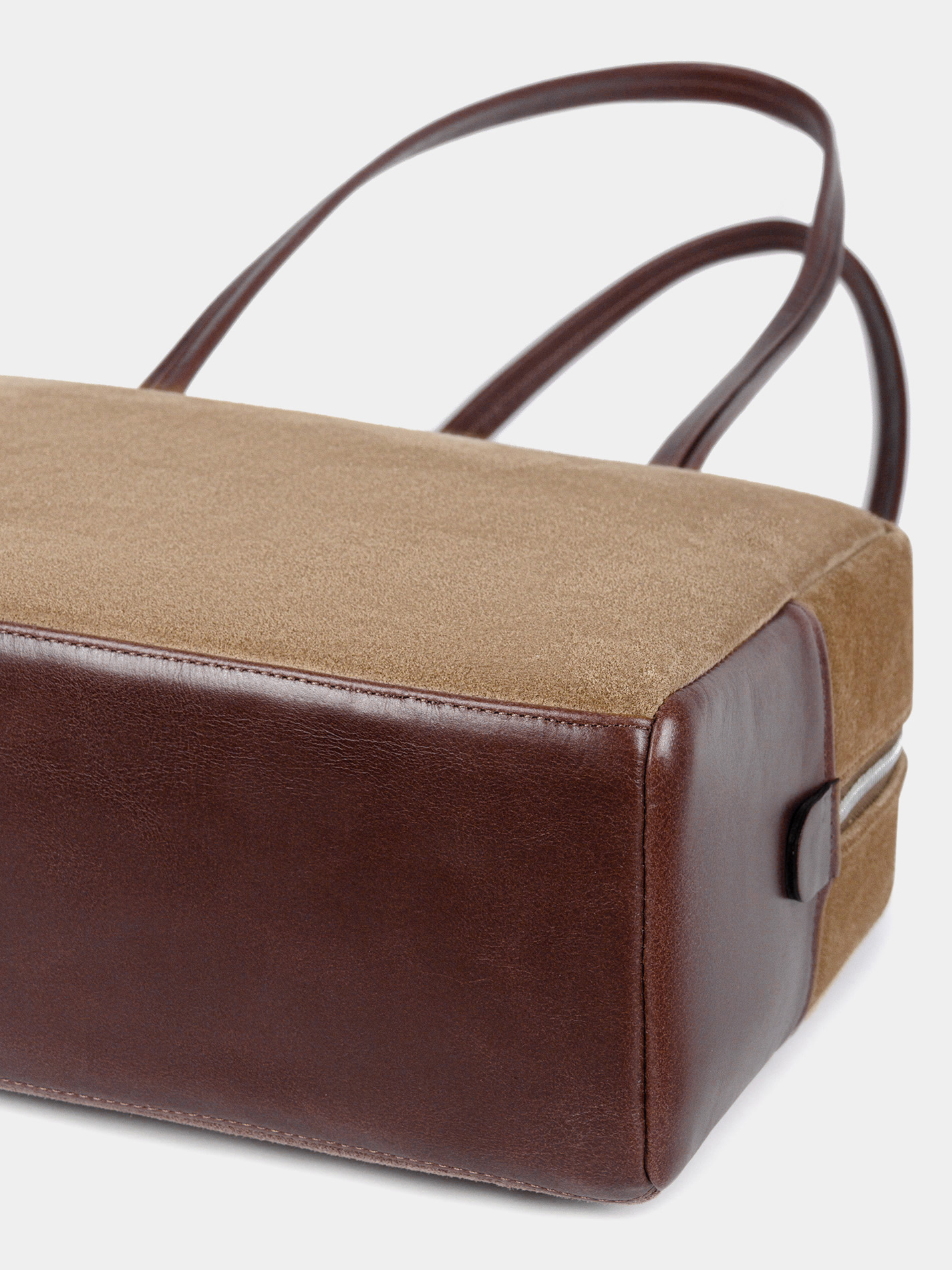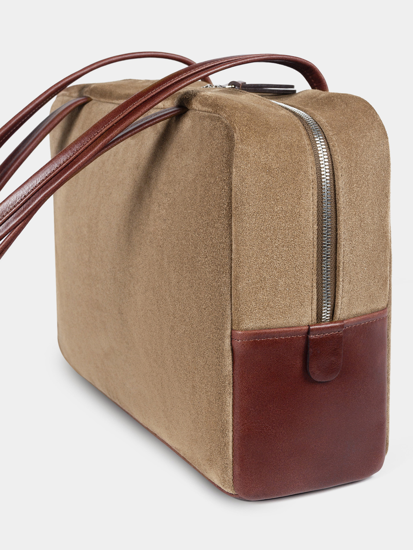 Цвета:Сумка Айтишница 14 из высококачественной натуральной замши (светло-коричневый цвет) с кожаным донышком и ручками, с металлической молнией. В сумке карман на молнии для ценных вещей, а также откидной карман на липучках для ноутбука 14 дюймов и формата А4. Откидной карман (длина — 32 см, высота — 23 см, глубина — 2,5 см) оберегает ноутбук от ударов и царапин от молнии. У сумки предусмотрены длинные функциональные ручки (37 см) для носки в руках и на плече. Интересный стильный вариант на каждый день. Рекомендованная нагрузка до 3,5 кг. Изделие упаковано в текстильный мешок.