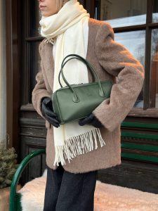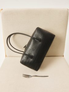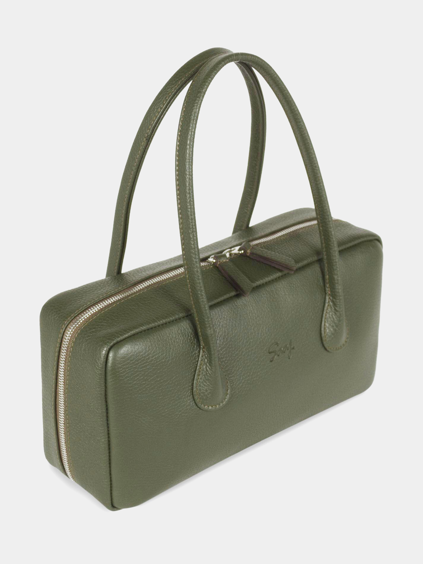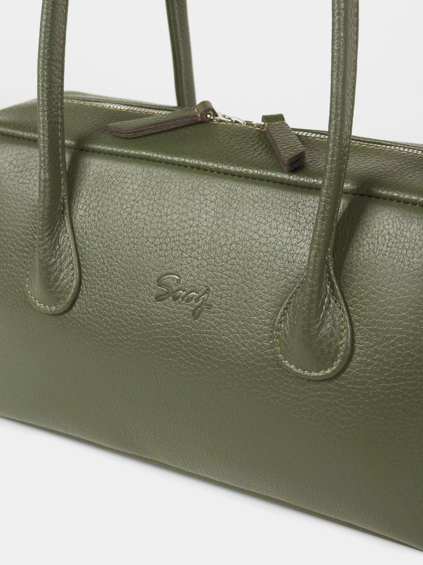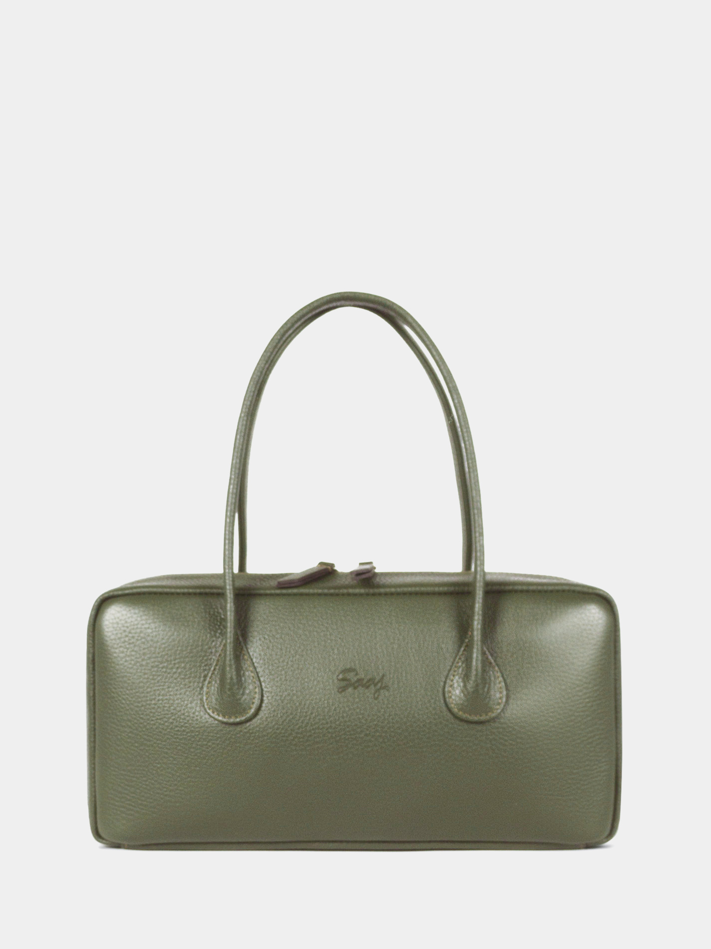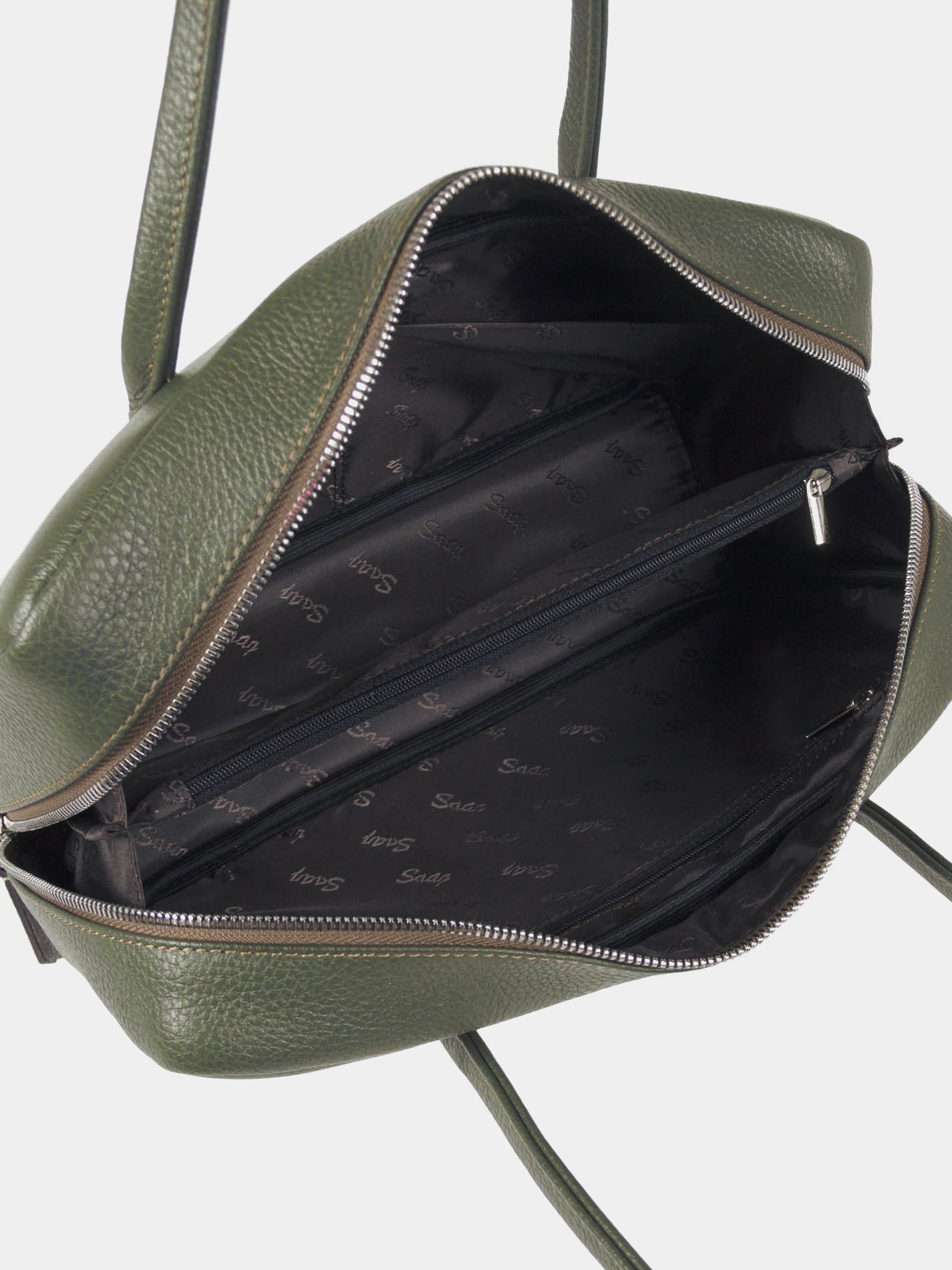 Сумка-багет женская бренда SAAJ из натуральной кожи. У сумки одно отделение. Внутри карман-перегородка на молнии, 2 открытых кармана для мелочи, 1 карман на молнии. Высота ручек 18 см. Изделие упаковано текстильный мешок.